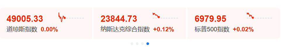 加密货币全线上涨,比特币重回89000美元上方。 周二(1月27日),美国三大股指收盘涨跌不一,科技股表现强劲带动纳指和标普上涨。截至收盘,道指跌0.83%报49003.41点,标普500指数涨0.41%报 6978.6点,纳指涨0.91%报23817.1点。 | 道琼斯工业 | 纳斯达克指数 | 标普500 | | --- | --- | --- | | 49003.41 | 23817.10 | 6978.60 | | -408.99 -0.83% +215.74 +0.91% +28.37 +0.41% | | | | 纳斯达克100 | 中国金龙 | 中概股100 | | 25939.74 | 7866.61 | 2926.65 | | +226.53 +0.88% +37.65 +0.48% +10.58 +0.36% | | | | 美国科技七巨头 中概科技龙头 CBOE波动率 | | | | 66893.16 | 4430.95 | 16.15 | | +737.38 +1.11% +33.04 +0.75% +0.06 +0.37% | | | 科技七巨头中六家上涨,英伟达、苹果涨超1%,微软 ...