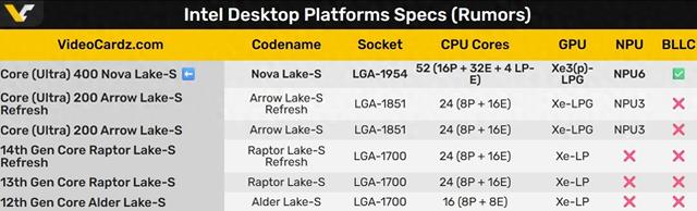 Nova Lake将有52核心?首次有低功耗能效核