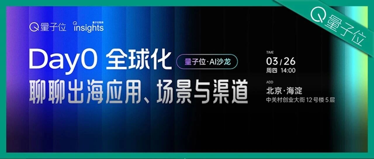 林樾 发自 凹非寺 量子位|公众号 QbitAI 龙虾在海内外火得一塌糊涂,会成为 AI初创全球化 的新机会吗? 当信息差被快速抹平,新的创业浪潮已经到来。 回到AI初创全球化的本质——生于AI原生时代,从Day 0就面向全球市场,该如何找准应用、场景与渠道? 本场沙龙,我们请来 小影科技 、 FluxA 、 谷歌 、 京东 、 声网 、 Meshy 等一线全球化实践者,从产品、技术、增长等真实视角,分享 可复用的出海经验。 同时还有多位正在躬身实践的AI初创团队,现场分享他们的全球化AI产品实践。 3月26日周四14:00 ,不论你是已经出海、正在筹备,还是只想搞懂全球AI创业的真实逻辑, 欢迎来现场交流! 现在AI出海沙龙观众招募正式开启,期待和你一起,从Day 0看懂全球化。 沙龙议程 聊聊出海应用、场景与渠道 北京·海淀 05126 中关村创业大街 12号楼 5 层 周四 14:00 活动流程 >> | 14:00 - 14:20 | 邱鸿霖 FluxA CTO | | --- | --- | | 14:20-14:40 | 杨帆 声网AI产品增长负责人 | | 14:40 - 15:00 | 韩源 ...