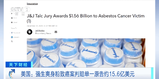 据央视财经报道,当地时间22日,美国马里兰州一个陪审团裁定,美国强生公司需向因使用其婴儿爽身粉产品而罹患癌症的一名女子,支付约15.6亿美元 (约合人民币110亿元)赔偿。 这名女子指控强生公司的婴儿爽身粉产品含有石棉,导致她患上间皮瘤。陪审团认为,强生公司对未能警告原告其婴儿爽身粉含有石棉负有责任。 美国媒体称,这是强生公司相关诉讼持续15年来,单一原告获赔金额最高的判决。 12月23日,强生公司表示将立即启动上诉程序。 报道提到,研究显示,爽身粉原料滑石粉的矿藏常常位于含石棉矿藏附近,滑石粉被开采时可能沾染石棉,强生公司否认所生产的爽身粉含石棉,称已做 过广泛测试,确保产品没有受到石棉污染。 据智通财经报道,目前强生在淘宝的旗舰店所售婴儿爽身粉均标明采用天然玉米粉。产品详情页显示,爽身粉0添加酒精、邻苯、二甲酸盐以及色素、尼 泊金和防腐剂,玉米淀粉含量达99%。其特别强调,爽身粉不含石棉类原料(吸水力差)、不含松科植物类原料(潜在致敏风险)。 强生公司是全球最大的保健产品制造商,婴儿爽身粉是其最畅销的产品之一,但该产品深陷滑石粉致癌争议已十余年。一些消费者指控其婴儿爽身粉和其 他滑石粉产品含有石棉,导致长 ...