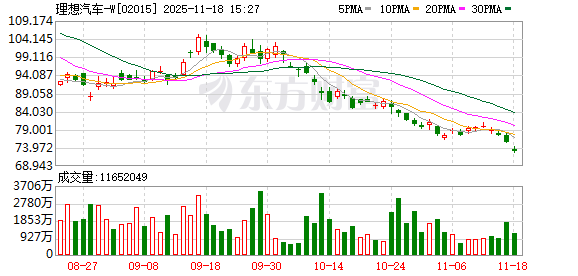 智通财经APP获悉,理想汽车-W(02015)跌近4%,触及72.6港元创去年9月以来新低,当前股价较年内高 点已跌超四成。截至发稿,跌3.71%,报72.6港元,成交额8.25亿港元。 消息面上,理想汽车11月1日公布的交付数据显示,2025年10月,该公司交付新车31767辆,同比下滑约 38%。值得注意的是,这已是其连续第五个月下跌。今年前10月,理想汽车累计交付32.9万辆。另外, 此前理想MEGA因 "冷却液防腐性能不足" 启动召回,涉及11411辆2024款车型。值得关注的是,公司拟 11月26日(下周三)举行董事会会议,以(其中包括)考虑及通过截至2025年9月30日止三个月的未经 审计财务业绩及其发布。 ...