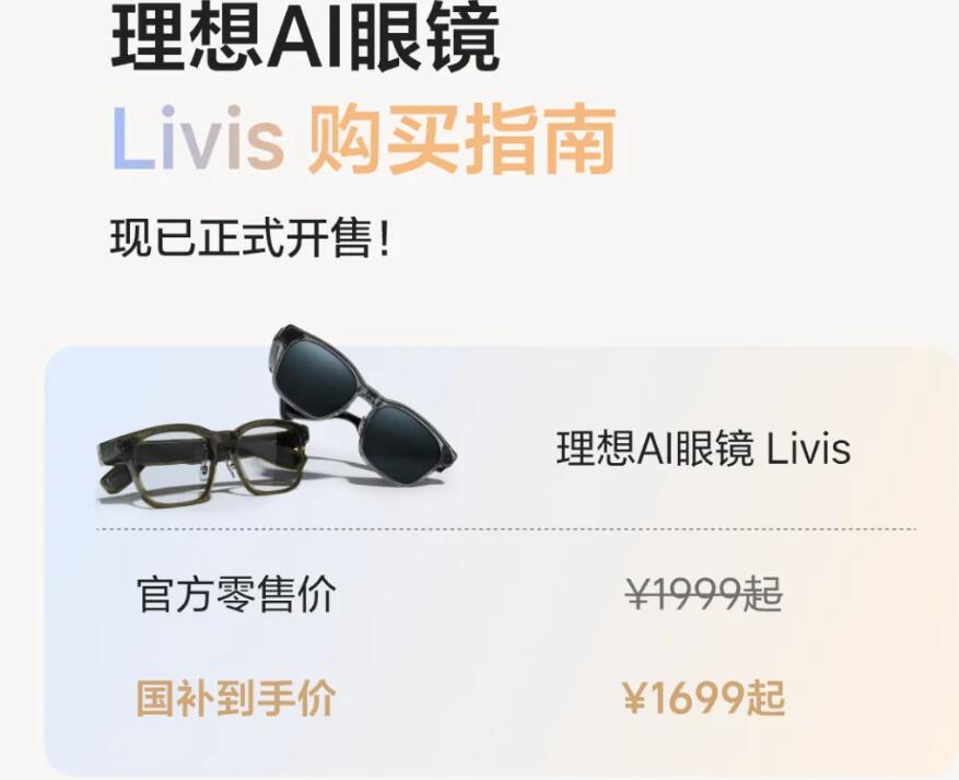 理想发布AI眼镜Livis:可与车机无缝联动,待机续航78小时,售价1999元起