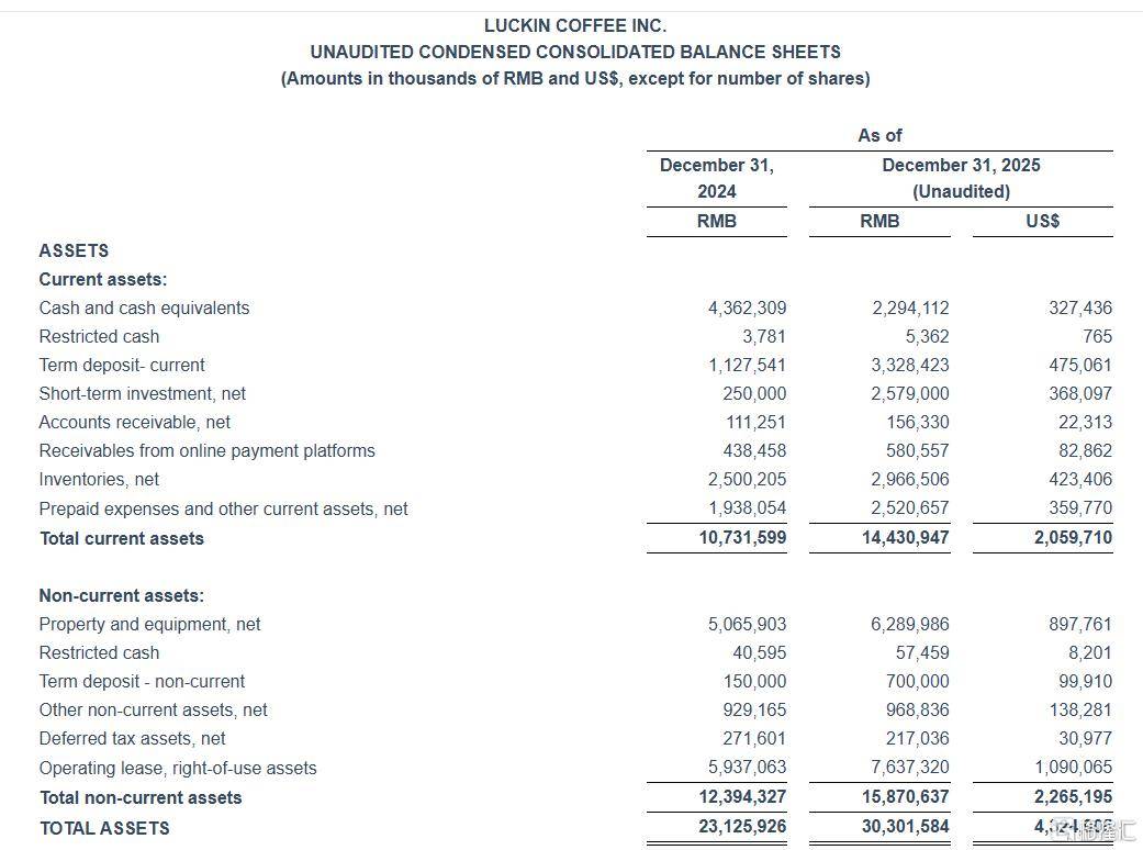 瑞幸咖啡2025Q4总净收入127.77亿元人民币,同比增长32.9%