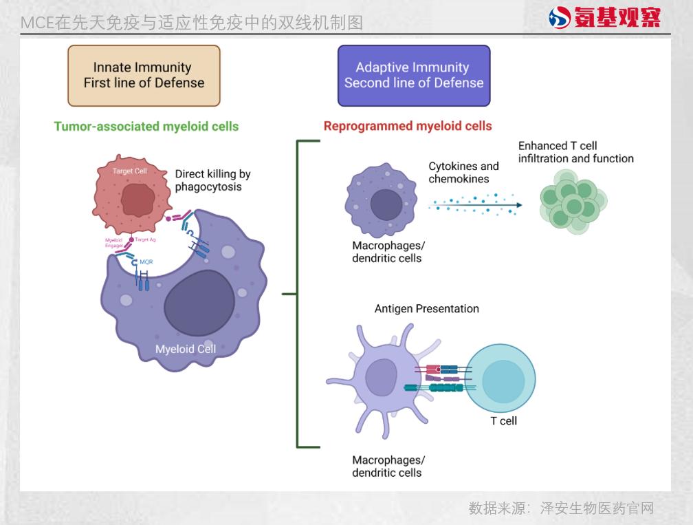 先是诺华以30亿美元与Dren Bio达成合作,利用后者开发的靶向髓系细胞衔接器和吞噬平台开发双抗疗法;紧接着赛诺菲直接以6亿美元首付款 买下Dren Bio的DR-0201,这个CD20靶向MCE在难治性红斑狼疮患者身上出现18个月无治疗缓解期,正在加速进击自免市场。而继与礼来达成 合作后,泽安生物又与GSK签下4个MCE项目合作协议…… 尽管在交易金额层面还难与TCE相比,但从如今的交易及临床推进情况上看,MCE这条新的免疫疗法赛道,正在快速成形。 机制上,MCE疗法靶向髓样细胞能降低CRS的风险,在适应症范围上可能应用更广,这也是MCE获得大药企青睐的关键。 当然,MCE能否成为"下一个TCE",甚至超越之,还需要更多的临床数据来证明。 TCE自去年以来相当火热,诞生了多笔重磅交易。而在结构上与其类似的髓系细胞衔接器(MCE),也突然从小众机制分子,跃升为多家MNC 争抢的战略资产。 / 01 / 大药企开始加注 作为一项新兴的技术,MCE的入局者并不算多,但多笔大药企主导的重磅交易已经提示,MCE正成为免疫疗法赛道中最受关注的技术之一。而 这些密集交易背后,也是各家药企不同却明确的战略诉求。 最先引爆 ...