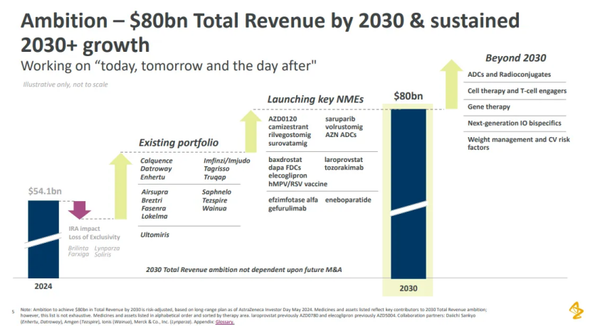 第44届摩根大通医疗健康年会(JPM大会)正在美国旧金山举行。作为全球生物医药领域规模最大、影响力最广的产 业与投资盛会,本届大会汇聚了来自生物技术、制药、医疗器械等六大领域的数千家企业,包括众多初创公司,吸引 了超过8000名全球行业精英。 一方面,行业交易活跃度持续攀升——过去一年全球制药领域共达成516项授权许可交易,总额创历史新高,突破 2502亿美元。然而另一方面,"专利悬崖"的阴影仍笼罩在许多大型药企心头,推动它们更积极地寻找标的、布局未 来。 AI不再止于概念,而是真正走向研发的核心。支付方对投资回报的审视日趋严格,中国创新药的国际化路径也愈发体 系化……这些议题在会场上被反复探讨、激烈交锋。而在所有声音中,跨国药企(MNC)高层的演讲尤其引人关注 ——他们既总结过去一年的得失,也勾勒新一年的战略方向,字里行间透露出企业发展的重心与野心。 阿斯利康:押注"下一代双抗+ADC" 阿斯利康在本届JPM大会上明确,将"下一代免疫肿瘤双抗+高价值ADC"列为创新与增长的双支柱。公司计划通过"自 主研发+生态合作"全面布局肿瘤与自身免疫领域,以此支撑其2030年800亿美元总收入的宏伟目标。 JPM大会P ...