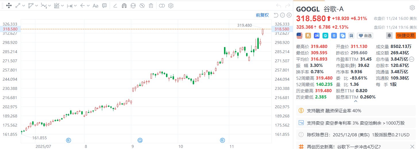 此外,"大空头"Michael Burry发布重磅檄文《供给侧的暴食》,正式向AI泡沫宣战。他驳斥"盈利即安 全"的论调,直言"英伟达就是当年的思科",警告市场正面临灾难性的过度供应与折旧陷阱。这位传奇 空头认定:无论多少人试图证明这次不一样,1999年的历史正在重演。 智通财经APP获悉,周二,谷歌A(GOOGL.US)盘前涨近4%,开盘势将续创历史新高,有望成为第四家 进入4万亿美元俱乐部的公司;英伟达(NVDA.US)盘前跌近5%,美国超微公司(AMD.US)盘前大跌近 7%。消息面上,据报道,谷歌正在大幅升级其在人工智能(AI)芯片竞赛中与英伟达的竞争,而 Meta(META.US)正成为一个潜在的数十亿美元客户。据报道,Meta正在讨论斥资数十亿美元,从2027 年开始将谷歌的TPU整合到其数据中心中,同时还计划最早在明年从谷歌云租用TPU。而Meta目前主要 依赖英伟达的GPU作为其人工智能基础设施。随着AI计算需求爆炸性增长,以及英伟达持续主导供应 链,谷歌推销其TPU的举措标志着AI芯片战争进入了竞争更激烈的阶段。 ...