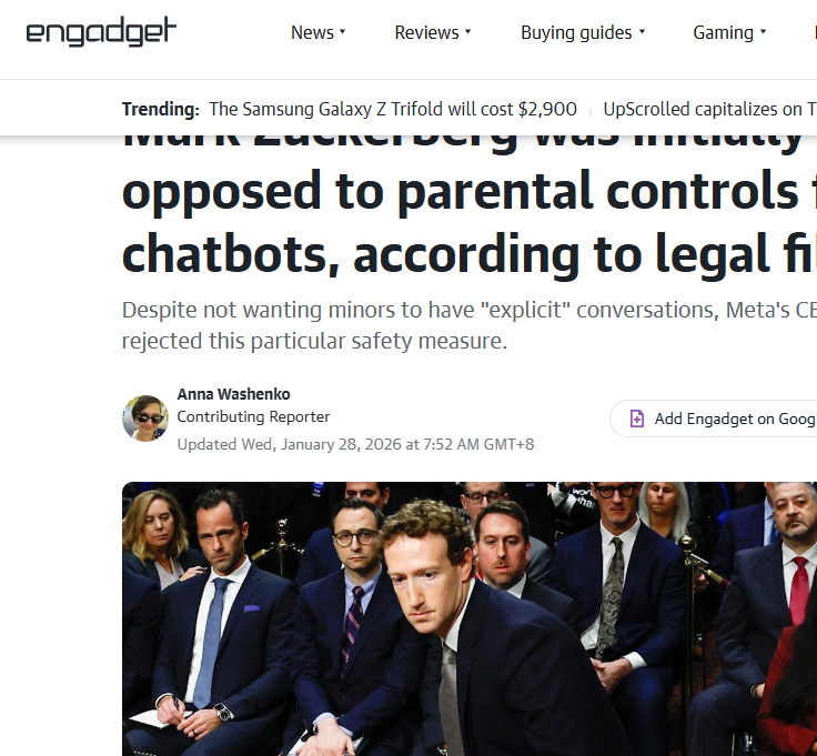 每日10万未成年人遭骚扰?扎克伯格被曝曾反对AI聊天机器人家长控制功能