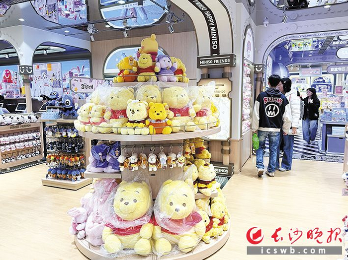 长沙晚报全媒体记者 贾凯清 从古灵精怪的史迪奇,到甜美可爱的HelloKitty,再到时下最热门的疯狂动物城、哈利·波特……一走进 MINISO FRIENDS,就仿佛掉进了一个"二次元空间"。70个IP打造的小型沉浸式空间令人应接不暇,各 式各样的毛绒挂件、玩偶等琳琅满目。 "以前想买不同IP的周边要跑好几家店,现在来这一家就能'一网打尽'!"史迪奇粉丝王女士得知新店开 业,第一时间赶来选购。除了心仪的史迪奇挂件,她还入手了多款其他IP周边,"这些小物件设计得太 精致,实在忍不住'剁手'。" 记者注意到,门店分为上下两层,分区明确且功能清晰:地下一层主打IP类、盲盒类产品,精准对接粉 丝收藏与打卡需求;地下二层则涵盖生活百货、出行用品、美妆个护等日常品类,兼顾实用消费场景。 在服饰区域,两位年轻顾客正专注比对三丽鸥主题T恤。"我们都是三丽鸥粉丝,看到专属联名服饰就 走不动路了。"顾客小董笑着说道。店内除了挂件、玩偶,还同步贩售IP联名包包、T恤等周边,丰富消 费选择。 原创形象表现亮眼,IP战略成增长新引擎 "这一家店里就有几十种IP,简直是我这种毛绒挂件爱好者的福音!"19日下午,前来国金街"探店"的小 ...