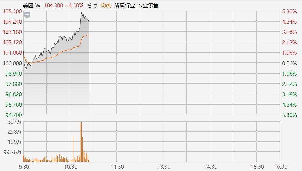 港股恒生科技上涨1%,科网股回暖,美团涨超5%,小鹏汽车、蔚来涨超3%,腾讯、京东、阿里巴巴涨超2%