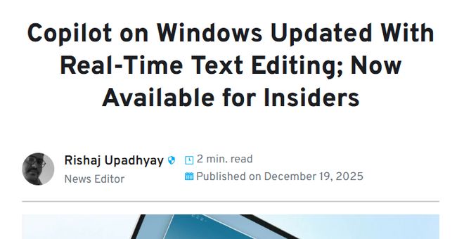 有了这项功能,用户可以在 Copilot Vision 会话期间编辑、重写、增强或简化文本。要启动此功能,需 要打开 Copilot 应用,然后点击聊天栏中的眼镜图标。接下来,只需共享窗口以显示文档或应用,将光 标放在文本字段中,然后自然地说话即可。 【环球网科技综合报道】12月20日消息,据Windows Report报道,在 Copilot 新版本中,微软推出 Copilot Actions实时文本编辑新功能。 来源:环球网 微软表示,诸如"使之更清晰"或"改写得更正式"之类的命令会立即触发 Copilot 的修改建议。用户可以 在应用建议之前预览它们,确保工作流程流畅,无需切换窗口。 需要注意的是,文本编辑需要在应用设置中启用Copilot Actions开关。启用此选项后,即可访问Copilot Actions功能,用于执行长时间运行的任务。(思瀚) ...
