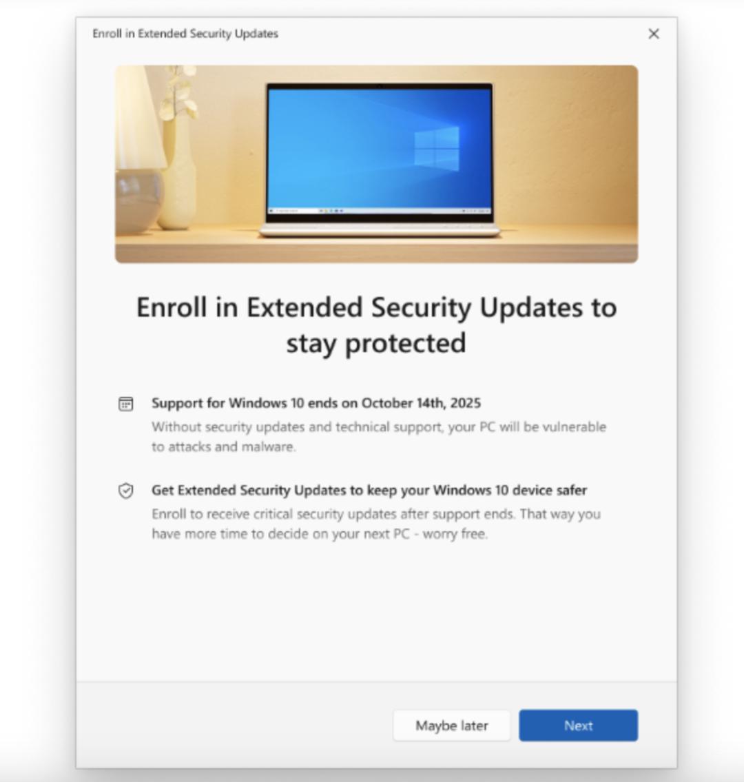 微软Windows 10将于10月14日起停服