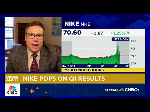 Joining us now is Brian Nagel from Oppenheimer. Brian, you pay more attention here to uh to the revenue or to other things. >> Well, good afternoon.No, look, this was a clear beat by by Nike and I think, you know, just like you're saying, John, I think, you know, the revenue is important here because that's really been the missing piece. I mean, sales have been weak of Nike for a while and what we learned here just a few minutes ago in the recent quarter, you know, sales were I mean, still not up to Nike st ...