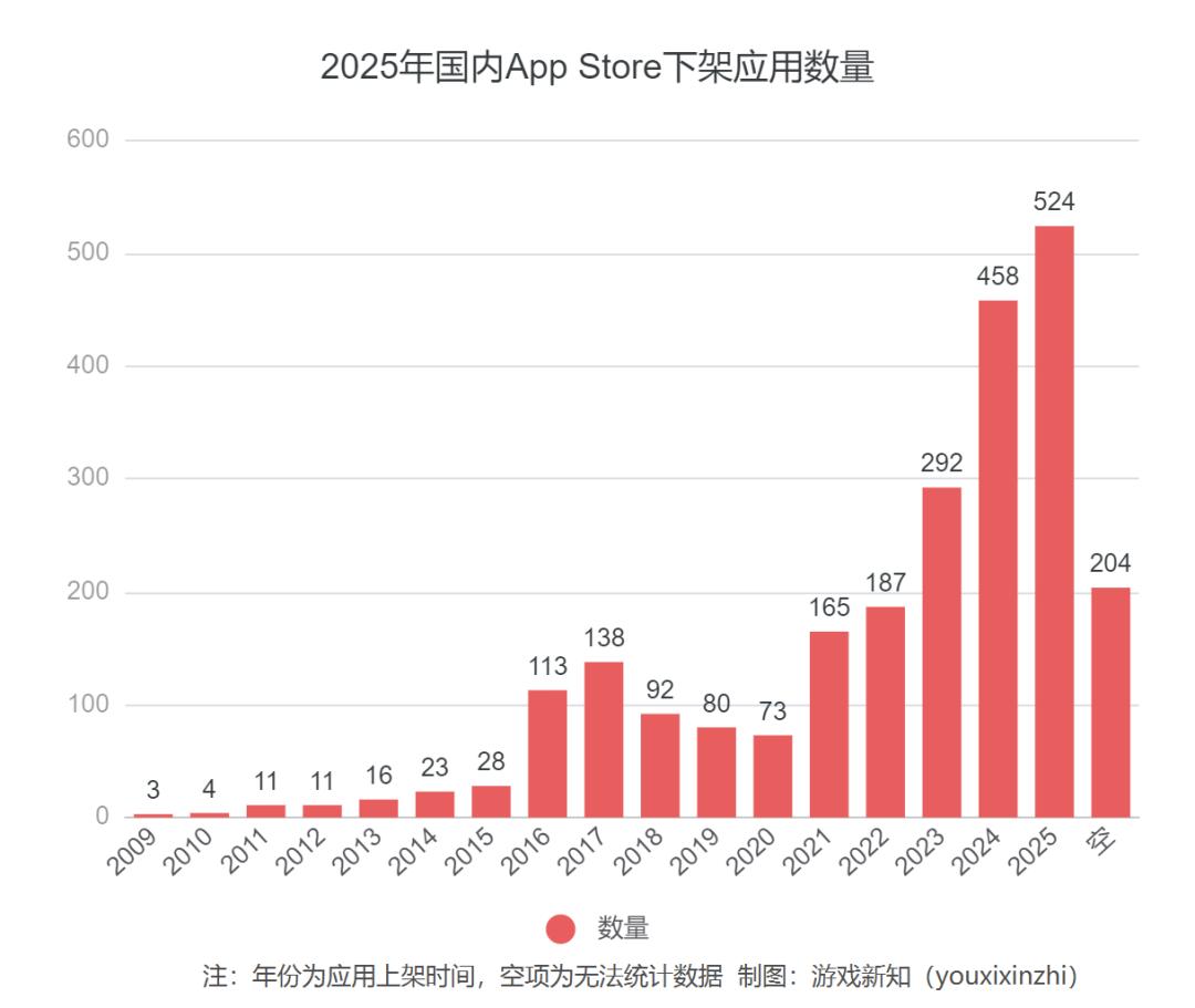 今年的游戏行业有些复苏的迹象,新品的趋势大致是稳中向好,版号数量达历年新高,仅11月就有184款版号下发,产品数量可以保证,而在质量上也涌 现出了如《燕云十六声》《超自然行动组》这类令人惊喜的爆款。 但与此同时,今年停运的产品数量超过2000款。游戏新知从Sensor Tower统计的数据里拉出了一份名单,国内App Store年内共下架了2222款应用,且并非 都是泛泛之辈,《白夜极光》《射雕》等产品曾经都是行业里受人瞩目的新星,但最终仍是成为了坟场的一份子。 通过数据对比,游戏新知发现了一些有趣的现象,譬如有4.05%的游戏活过了10年,21.58%的游戏活过了5年,但也有27.56%的游戏连一年都未活过就匆 匆下架,而在营收、下载量方面也有类似的情况。 注:数据来源于Sensor Tower,汇率按照1:7.08计算,统计标准为国内App Store2025年1月1日-11月25日游戏分类的已下架应用,许多个人开发者和境外 开发者所上传的应用、部分测试包体以及部分更换发行商的产品也会被计入数据,请更多参照整体趋势而非具体数字。 有90款游戏活过十年,近30%的游戏没活过一年 离2025年结束仅有22天, ...