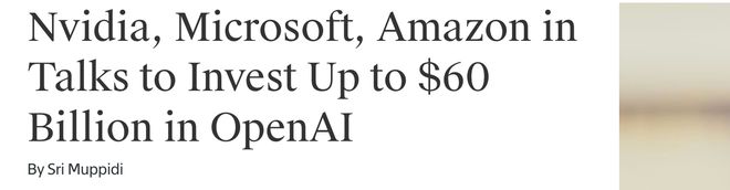 速递|史诗级千亿融资:英伟达、微软、亚马逊拟向OpenAI注资最高600亿美元