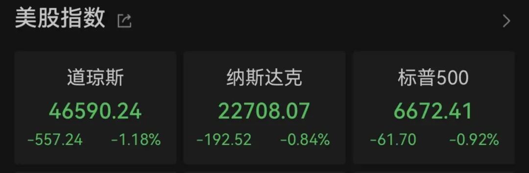 2025.11.18 本文字数:1444,阅读时长大约2分钟 作者 |第一财经 樊志菁 周一,华尔街主要股指走势承压。本周市场日程密集,既包括人工智能巨头英伟达的财报发布,也将迎 来9月非农等政府经济数据的恢复披露。 截至收盘,道琼斯工业平均指数下跌557.24点,跌幅1.18%,收于46590.24 点,纳斯达克综合指数跌 0.84%,收于22708.07点,标准普尔500指数跌0.92%,收于6672.41点,4月以来首次跌破50日均线重要 心理支撑,衡量市场波动性的芝加哥商业交易所Cboe恐慌指数VIX大涨12.97%,报22.39。 稍早收盘的欧洲三大股指同样走弱,泛欧斯托克600指数跌0.54%,德国DAX 30指数跌1.20%,法国 CAC 40指数跌0.64%。 明星科技股表现分化,谷歌涨3.1%,巴菲特旗下伯克希尔哈撒韦披露第三季度买入其股份。 纳斯达克中国金龙指数跌1.2%,阿里巴巴涨2.6%,其正式宣布 "千问"项目全力进军AI to C市场,当天 千问APP公测版上线,京东涨0.8%,拼多多跌1.5%,百度跌1.6%,网易跌1.7%。 随着美国历史上最长时间的政府停摆于上周正式结束,未来 ...
