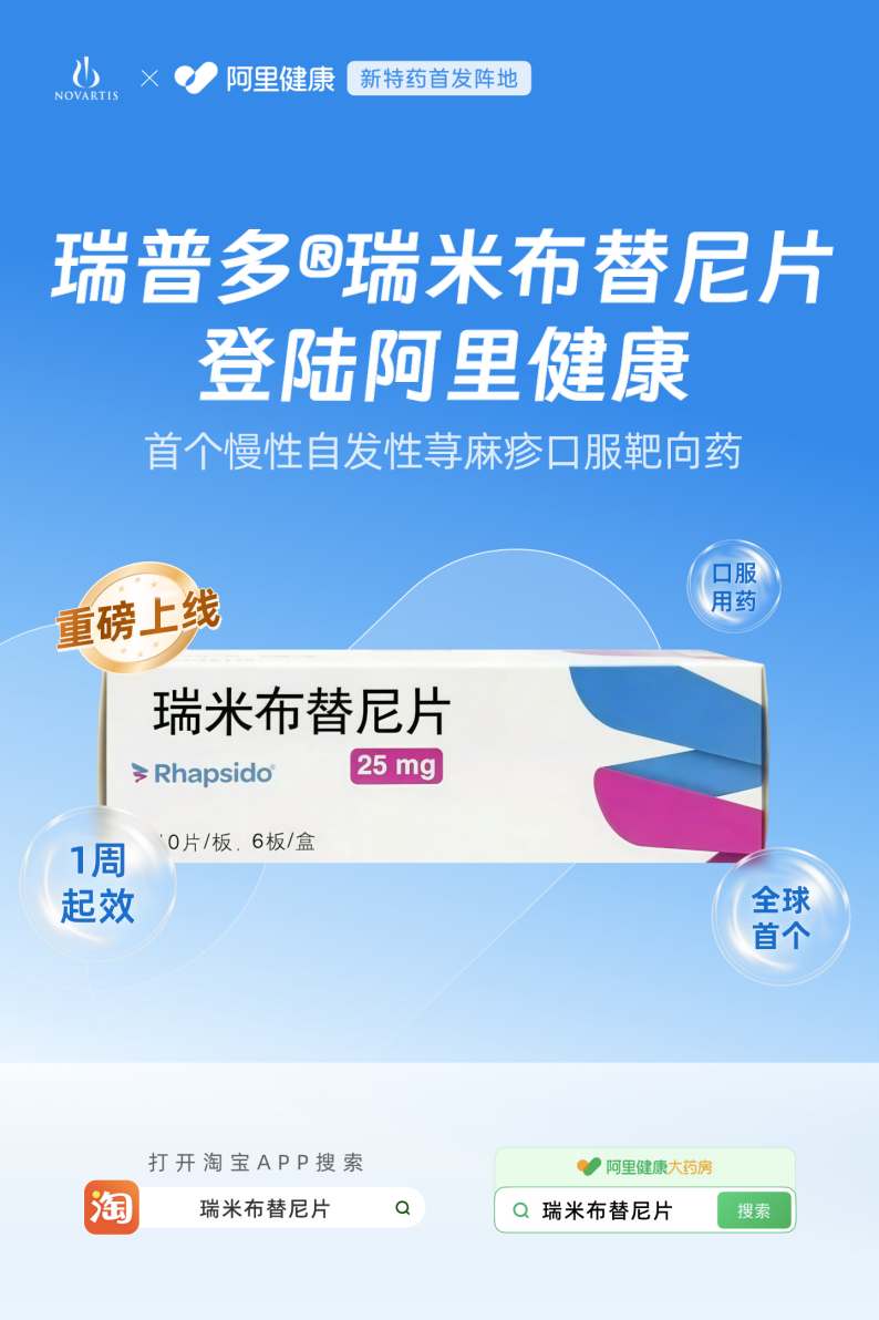 瑞普多®的主要成分瑞米布替尼是一种高选择性BTK抑制剂,通过从源头阻断瘙痒和风团信号的释放,提供了一种快速起效、疗效持久 且使用便捷的全新治疗方案。北京协和医院变态反应科主任医师支玉香教授曾公开表示:"当前的抗组胺治疗,就像是在漏水后不断用 抹布擦地。而BTK抑制剂的作用,则是直接关掉漏水的'总开关'。从源头上阻断炎症信号的释放,不仅起效更快,作用也更全面、持 久。" 瑞普多®瑞米布替尼片的获批上市,正是基于两项全球关键III期临床研究。结果显示,对于使用二代抗组胺药治疗后仍有症状的CSU患 者,使用瑞米布替尼片后最快一周即可观察到症状的显著改善,治疗52周期间,风团、瘙痒及血管性水肿均获持久改善,同时作为一款 口服药,它大大提升了患者用药的便捷性和治疗依从性。 作为此次合作的核心支撑,阿里健康将依托其长期深耕的"全周期慢病管理体系",为患者打造一个"院外第二诊室"——在这里,健康管 理师定期跟进用药情况,发送个性化的饮食建议;患者遇到副作用或指标波动时,可随时在线咨询;医生定期在社群内开展主题分享, 解答共性问题。这种持续的"在场感",让患者感受到始终被关注、被支持,从而更有信心坚持治疗。 近日,阿里健康与 ...
