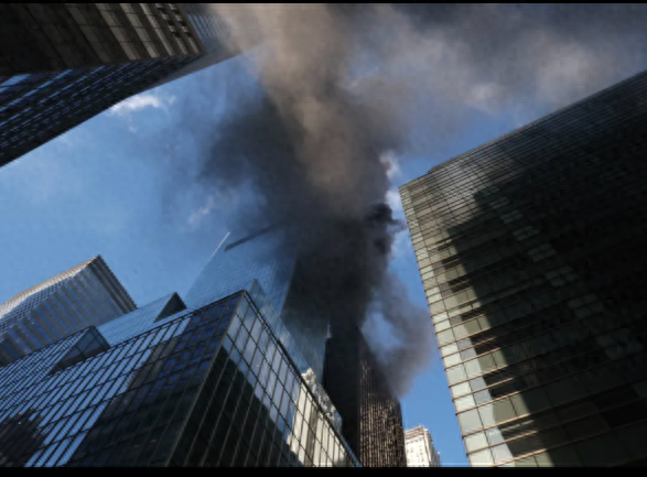 美国纽约曼哈顿一建筑起火,屋顶浓烟滚滚