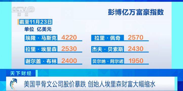 (央视财经《天下财经》)受人工智能热潮推动,美国数据库软件供应商甲骨文公司股价曾于9月出现 暴涨,一度推动公司创始人拉里·埃里森成为全球首富。不过此后甲骨文股价下挫,埃里森个人财富大 幅缩水,目前他在彭博亿万富豪指数榜上的排名已被谷歌联合创始人拉里·佩奇超越。 彭博亿万富豪指数显示,截至23日,特斯拉首席执行官埃隆·马斯克为世界首富,财富总额4220亿美元 (约合人民币3万亿元);谷歌联合创始人拉里·佩奇目前财富总额为2570亿美元(约合人民币1.83万亿 元),位居第二;拉里·埃里森滑落至第三位,财富总额2530亿美元(约合人民币1.8万亿元)。 另外,外界对于甲骨文日益依赖债务融资也表达了担忧。自9月股价见顶以来,甲骨文股价已连续六周 收跌,较历史高点累计下跌约40%,导致埃里森财富总额缩水约1300亿美元。而与之相对的,受益于最 新人工智能模型表现良好,谷歌母公司字母表近期股价持续上涨,该公司股价今年以来上涨近60%,这 帮助拉里·佩奇的财富总额在今年增加了近900亿美元。 转载请注明央视财经 编辑:王昕宇 埃里森的财富波动主要与甲骨文股价有关。今年9月10日,甲骨文公布消息称,其人工智能云基础设施 业 ...