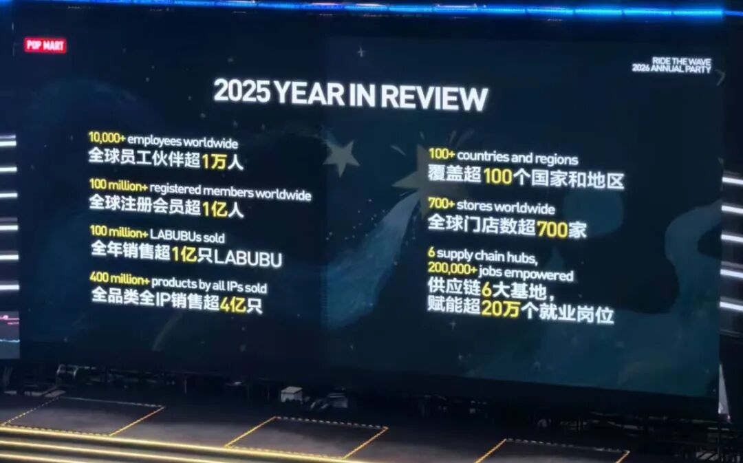 Core Insights - The company, Pop Mart, held its annual meeting for 2026 and revealed key performance data from the past year [1][2]. Group 1: Company Performance - In 2025, Pop Mart had over 10,000 global employee partners and more than 100 million registered members [3][5]. - The LABUBU product line achieved annual sales exceeding 100 million units, while total sales across all product categories and IPs surpassed 400 million units [3][5]. - Pop Mart's business operations now extend to over 100 countries and regions, with more than 700 global stores and six supply chain bases, creating over 200,000 jobs [3][5].