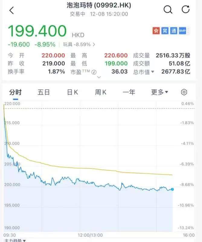 12月8日,港股市场的"潮玩明星"泡泡玛特遭遇重挫,股价大幅低开低走。截至12月8日收盘,其股价暴 跌8.49%,报收于200.4港元/股;12月9日,公司股价进一步下跌5.04%至190.3港元/股,距今年8月创下 的历史高点(339.8港元/股)累计跌幅已超过43%。 (资料来源:wind资 讯) 炒股就看金麒麟分析师研报,权威,专业,及时,全面,助您挖掘潜力主题机会! 出品:新浪财经上市公司研究院 作者:新消费主张/cici 泡泡玛特当前的股价颓势与其亮眼的业绩表现形成了鲜明反差。就在不久前,公司发布的2025年第三季 度未经审核业务状况显示,其整体收益同比激增245%至250%,其中海外市场收益增幅更高达365%至 370%,呈现爆发式增长。 然而,这份"成绩单"并未能提振市场信心。相反,股价在业绩发布前后便持续下挫。这种背离的核心原 因在于,敏锐的资本市场关注的不是过去的爆发,而是未来的动能。市场担忧,驱动此次惊人增长的核 心引擎——现象级IP"Labubu"的热度可能已达顶峰,公司正站在增长曲线关键的"拐点"之上。 核心爆款IP Labubu市场溢价持续消退、常规款甚至跌破原价 Labubu,这只 ...