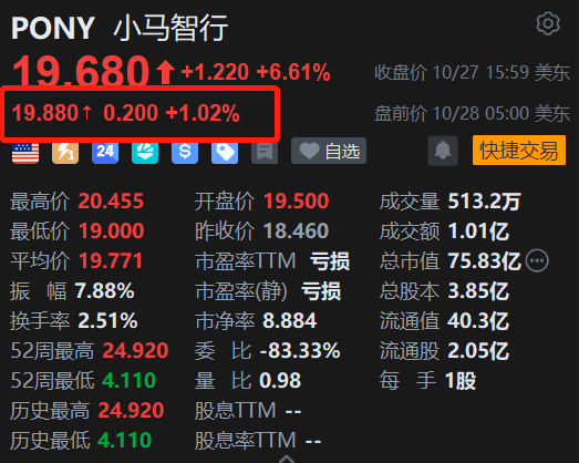 美股异动丨小马智行盘前续涨超1% H股今日启动招股 即将实现双重主要上市