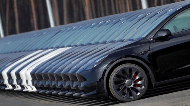 ToplineTwo major electric vehicle makers were trending in opposite directions Tuesday morning amid volatility in the EV market, as news of Rivian’s lagging deliveries dragged share prices down, while Tesla beat expectations and saw an uptick in pre-market trading.File - Tesla cars are parked at the construction site of the new Tesla Gigafactory for electric cars ... [+] in Gruenheide near Berlin, Germany, March 18, 2022. Tesla is expected to report fourth quarter and full year sales Tuesday as electric vehi ...