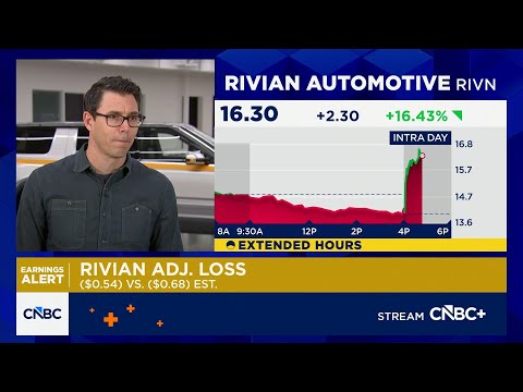 Rivian shares seeing a big move higher in the after hour session after reporting results moments ago. Philau has uh now the CEO of Rivian R. J.Scr for his first comments before the call. Phil, thank you Melissa. RJ, good to be here in Irvine.Let's start first off fourth quarter you lose money again. You're expecting to lose anywhere between 1.8% and 2.1% this year. When does this company get to sustain profitability.>> Well, Q4 for us was a really important quarter. This was the first u quarter where we've ...