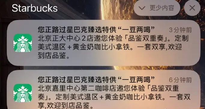 21世纪经济报道记者肖潇 北京报道 几乎所有奶茶咖啡品牌都在自建 App 和小程序。通过线上点单沉淀用户数据,锁定核心客群,这已是 茶咖行业的一条重要策略,但过度收集个人信息的问题常常被忽视。 扫码下单、查找门店时过度索取个人信息,这几年消费者对数字化餐饮的抱怨不断。这并非星巴克第一 次因个人信息问题被点名,而类似投诉在茶咖行业更是屡见不鲜。 于泽辉告诉我们,自己下载星巴克App两年,这是第一次遇到此类情况。19日下午,他照常通过星巴克 App 点单。傍晚路过北京朝阳区嘉里中心附近时,大概两公里外的星巴克臻选店便开始弹出"一豆两 喝"的促销消息。 11月24日,星巴克关怀中心的工作人员跟于泽辉电话解释,公司使用的是苹果"地理围栏"技术,之后会 下线该功能。 所谓"地理围栏(geo-fence)",是苹果自2012年开始提供的一项位置服务。合规安全公司北京汉华飞天 总经理彭根解释,它可以简单理解为一种雷达系统,用户进入或离开指定区域,就会触发手机的广播通 知行为。 在苹果系统中,这项技术被用于许多提醒场景,例如提示"设备可能不在你身边"。一些亲子类 App 也 会利用它监测孩子是否离开特定区域。但在设计早期,苹 ...