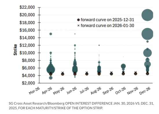 炒股就看金麒麟分析师研报,权威,专业,及时,全面,助您挖掘潜力主题机会! 来源:金十数据 在上周五黄金经历46年来表现最糟糕的一天并大幅暴跌时,部分投资者却通过期权押注金价可能触及2 万美元。 由海格(Mike Haigh)领导的法兴银行大宗商品团队分析发现,市场中出现了押注金价到今年年底将达 到1万美元、1.5万美元甚至2万美元的期权交易。 有投资者押注年底金价 将达到1万、1.5万甚至2万美元 在上周的剧烈波动后,黄金期货价格在周二上涨了5%,重回4900美元。 根据法兴银行分析师的观察,虽然行权价在4000美元的看跌期权也有所增加,但极端押注明显较少。这 种非对称的风险偏好特征既是衡量情绪的有用指标,也是看涨的信号。尽管如此,他们承认通常无法推 断期权头寸是属于投机还是套期保值,且每一笔期权买单的背后都对应着一个卖家。 引发上周五金价突然暴跌的触发因素是凯文·沃什(Kevin Warsh)被提名为下任美联储主席。法兴银行 团队写道,这一提名信号表明"机构混乱程度低于预期"。此前,这种对混乱的担忧在数月内一直是金价 上涨的推动力。市场对沃什可能推行的货币政策的解读,也导致了美元和利率被重新定价并双双走高。 ...