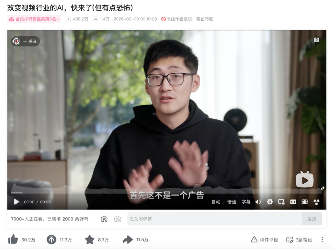 接下来,影视行业的一切价值都将重估。 摘要: 一年前的春节,一家中国公司用R1大模型震撼全球科技界。凭借算法创新突破算力限制,以较低训练成本达到以往AI大模型靠堆算力、拼资金和数据的 效果,外媒将这一突破称为"DeepSeek时刻"。 那场技术地震的余波尚未平息,2026年2月,字节跳动似乎正准备接棒,在视频生成领域制造另一场海啸。 就在几天前,字节跳动旗下的最新一代视频生成模型Seedance 2.0悄然在即梦、豆包等产品中开启小范围内测。 如果你还记得OpenAI发布Sora时的那个夜晚,那么现在的感觉似曾相识,却又有所不同。不同之处在于,这一次,站在风暴眼中心的是又一家中国公 司,更重要的是,这不再是少数人手中的演示Demo,而是一个正在被数万创作者疯狂测试的"实战武器"。 一位曾专注大银幕创作的从业者向凤凰网科技感叹,"Seedance 2.0的完成度令人惊艳,尝试了猫狗宠物的创作,效果都很好",但其也对影视行业接下来 的发展感到担忧,"能预见制作层面的预算将被砍,《流浪地球3》这样的作品几年前立项成本数亿,这种还在制作过程中的作品,接下来所有的一切都要 价值重估"。 一枚王炸,悄悄扔出 2月7日晚间 ...