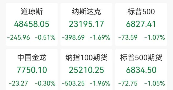 纳指跌近400点,科技巨头重挫,闪迪跌超15%,中概股普跌,亿鹏能源跌12%,金银跳水