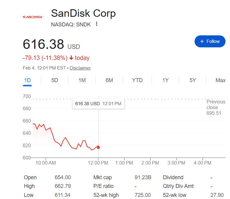 Why SanDisk stock tumbled 10% today: are traders cashing out of AI rally?