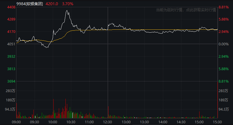 软银股价涨幅高达10%,为自12月4日以来的最高水平