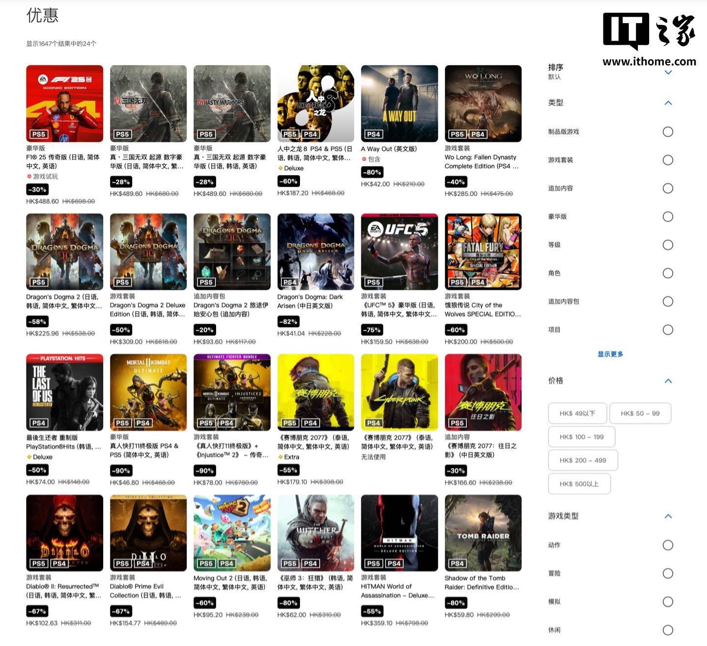 IT之家 11 月 7 日消息,索尼现已在 PSN 商店开启"11 月优惠"游戏促销活动,包括《逆转裁判》等游戏迎来史低价格,IT之家附折扣地址 (https://store.playstation.com/zh-hans-hk/category/38b65641-0cd5-4fd0-aa6b-bafe4a84c640/1)。 《漫威蜘蛛侠》年度版新史低:55 港币(IT之家注:现汇率约合 50.4 元人民币) 《幽灵诡计》新史低:75.24 港币(现汇率约合 68.9 元人民币) 《圣恩传说 f:复刻版》新史低:149.5 港币(现汇率约合 136.9 元人民币) 《逆转裁判 456》新史低:155.2 港币(现汇率约合 142.1 元人民币) 《逆转裁判 123+456》新史低:206.1 港币(现汇率约合 188.7 元人民币) 《逆转检察官 1&2》新史低:129 港币(现汇率约合 118.1 元人民币) 《光与影:33 号远征队》新史低:豪华版 374.4 港币(现汇率约合 342.9 元人民币) 《真三国无双:起源》豪华版新史低:489.6 港币(现汇率约合 448.4 元人民币) 《饿狼传说:群 ...