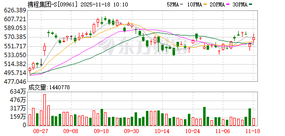 (文章来源:每日经济新闻) 每经AI快讯,11月18日,携程集团-S(09961.HK)绩后涨近4%,截至发稿,涨3.69%,报576港元,成交 额6.54亿港元。 ...