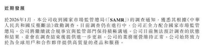 凤凰网科技讯 2月26日,携程集团发布公告称,2026年1月,本公司收到国家市场监督管理总局的调查 通知,获悉其依据《中华人民共和国反垄断法》启动相关调查。目前调查仍在进行中,公司正全力配合 国家市场监督管理总局。 公告显示,公司将继续就合规事宜与监管部门保持积极沟通。目前无法预计调查的进展与结果,并将在 调查结束后发布进一步更新。公司业务运营保持正常。 值得注意的是,今日在公布相关业绩信息的同时,携程集团同步披露了董事会层面的重要人事调整。其 中,联合创始人范敏辞任董事及总裁职务,季琦辞任董事职务。公司在公告中对两位联合创始人过往在 公司发展中的长期贡献作出高度评价。 本文源自:凤凰网科技 与此同时,携程宣布任命吴亦泓、萧杨为新任独立董事,并新增李基培担任董事会薪酬委员会成员。公 司称,此次调整旨在进一步完善治理结构,强化董事会在风险监督与长期战略方面的专业性。相关董事 变动自2026年2月25日起生效。 此前,市场监管总局1月14日宣布,市场监管总局根据前期核查,依据《中华人民共和国反垄断法》, 对携程集团有限公司涉嫌滥用市场支配地位实施垄断行为立案调查。 同日,"携程黑板报"发布回应公告:近日,携程接到 ...