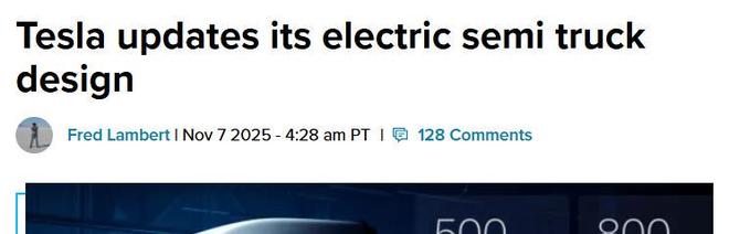 特斯拉纯电重卡Semi新版外观公布 将于明年投入量产