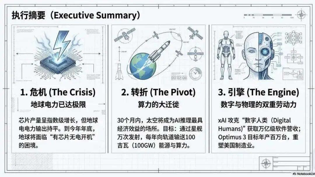 Group 1: Management Philosophy - Musk's management style is characterized by a sense of urgency and a high pain threshold, focusing on addressing acute pain rather than chronic bottlenecks in organizations [4][6][7] - He emphasizes "constraint analysis" to identify and eliminate inefficiencies, directly engaging with engineers to resolve issues without lengthy presentations [7][8] Group 2: AI and Human Intelligence - Musk predicts that within five years, AI intelligence will surpass the total human intelligence, potentially reducing human intelligence's share in the universe to less than 1% [8][10] - He argues that AI will not eliminate humanity but may find value in human irrationality and creativity, which are rare variables in the universe [10][11] Group 3: US-China Manufacturing Competition - Musk expresses a high regard for Chinese manufacturing capabilities, warning that without breakthrough innovations, the US risks losing dominance in the industrial chain [12][14] - He notes that China's electricity output is three times that of the US, indicating a significant gap in industrial capacity and manufacturing scale [14][15] - Musk highlights the US's loss of foundational smelting capabilities, relying on China for processing rare earth materials [15][16] Group 4: AI Infrastructure Challenges - Musk identifies a "hardware wall" for AI development, primarily due to limitations in electricity supply and the slow expansion of ground power plants [21][22] - He proposes a "space AI data center" plan to overcome these challenges, leveraging the efficiency of solar energy in space, which can be five times more effective than on Earth [23][25] Group 5: xAI and Digital Human Simulation - Musk outlines xAI's strategy focusing on Digital Human Simulation, aiming to create AI that can operate like a human by the end of 2026 [26][28] - He plans to bypass complex API integrations by enabling AI to learn to interact directly with screens and software [29] Group 6: Robotics and Recursive Manufacturing - The development of the Optimus humanoid robot is seen as a transformative force in labor dynamics, with a focus on creating dexterous hands for complex tasks [31][32] - Musk envisions a recursive manufacturing model where robots produce other robots, leading to exponential increases in productivity [33][34] Group 7: Future Outlook - Musk's vision intertwines various technological advancements, suggesting that the future will be shaped by the convergence of rocket capabilities, chip performance, robotic labor, and space energy [35]