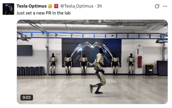Run, Optimus, run!Tesla Optimus (@Tesla_Optimus):Just set a new PR in the lab https://t.co/8kJ2om7uV7 ...