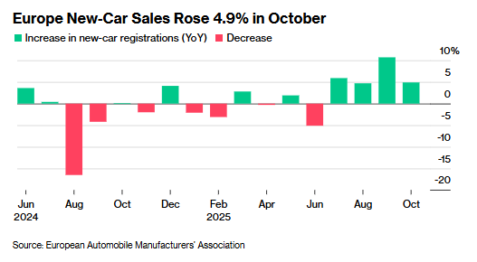 欧洲车市“金九银十”行情延续:平价电动车受捧 销量实现四连涨