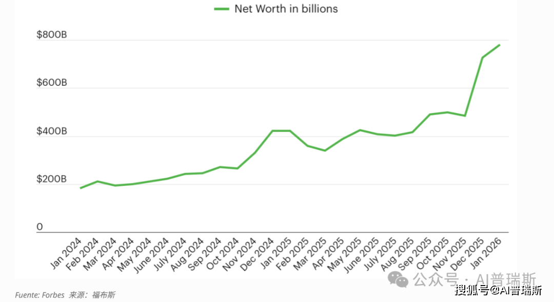 这个数字比去年3月xAI和X合并时的1130亿美元估值翻了一倍多。福布斯估算,马斯克持有xAI Holdings 49%的股份,这部分资产价值从之前的600亿美元 涨到了1220亿美元,一轮融资就多了620亿。 AIPress.com.cn报道 埃隆·马斯克距离成为人类历史上首位拥有 8000 亿美元财富的人,仅有一步之遥。 这是什么概念?比利时2024年的GDP大约是6646亿美元,马斯克一个人的财富已经超过了这个西欧发达国家的全年经济产出。 福布斯最新确认,马斯克旗下的人工智能公司 xAI Holdings 已完成新一轮融资,从私人投资者处筹集了 200 亿美元,推动公司估值在本月初飙升至 2500 亿美元。 这一数字不仅惊人,更是对马斯克商业帝国的又一次重估。 目前马斯克的身家是7800亿美元,稳居全球首富。他比第二名谷歌联合创始人拉里·佩奇多出5100亿美元,这个差距本身就比绝大多数富豪的全部身家还 大。历史上只有甲骨文的拉里·埃利森曾经摸到过4000亿美元的门槛,但也没撑多久,去年9月冲高之后就跌了1590亿,现在已经从第二掉到第五了。 马斯克过去一年的财富增长轨迹堪称魔幻。去年10月他成为首个身家 ...