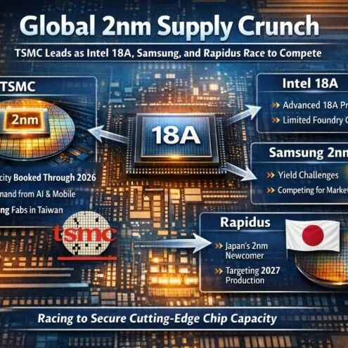 公众号记得加星标⭐️,第一时间看推送不会错过。 半导体行业正面临着结构性供应挑战,而这一挑战与先进芯片(尤其是用于人工智能、高性能计算以 及下一代移动和消费电子设备的芯片)的爆炸式需求密切相关。这场风暴的核心是2纳米制程技术, 由于其依赖于纳米片或GAA晶体管架构以及极其精密的微影工具,因此代表着半导体历史上最复 杂、最昂贵的转型之一。 英特尔18A工艺:具有竞争力的替代方案,但并非完全的缓冲 英特尔的 18A制程节点是其后 Intel 7 路线图的一部分,大致与 2nm 制程属于同一代。它引入了 RibbonFET(GAA 的一种版本)和 PowerVia 背面供电技术,旨在提升性能和能效。英特尔率先推 出了量产级 GAA 和 BSPD 技术,堪称半导体创新的巅峰之作。 英特尔于 2025 年开始量产 18A 芯片,主要面向其自家处理器,例如 Panther Lake,但与其他芯片 相比,其作为外部客户代工替代方案的应用仍然有限。尽管截至 2025 年年中,18A 的良率有所提 升,但普遍认为仍落后于台积电 N2 的良率,而且英特尔自身的代工生态系统相对于台积电庞大的全 球客户群而言仍然规模较小。 英特尔的 ...
