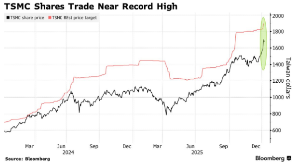 台积电(TSM.US)股价迭创新高 华尔街争相上调目标价