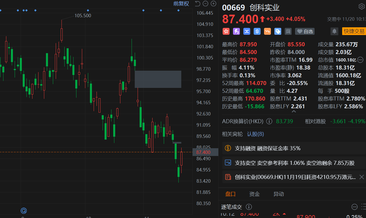 昨日下跌创阶段新低的创科实业(0669.HK)反弹逾4%,报87港元,市值重回1600亿港元。消息上,创科实业2025年11月19日耗资4210.95万港元回购50万股, 回购价格每股84-84.95港元。 花旗报告指,创科实业最大的客户家得宝反映美国消费市场的动态,而创科实业的业务重心偏向专业领域,并占其总销售额约七成,因此维持其今年预测。 该行指出,明年起创科有望加快增长,如果家得宝业绩未达预期导致创科实业股价回落,相信会是该股的买入时机。该行维持创科目标价125港元及"买 入"评级。 ...