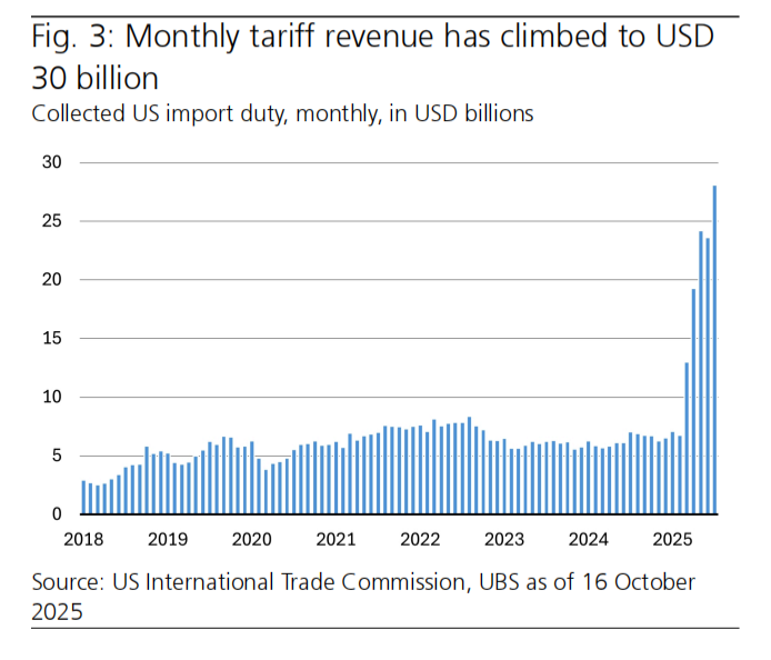 瑞银认为,若美国最高法院裁定特朗普关税违法,将迫使政府向进口商退还约1400亿美元税款。这相当于2025年联邦预算赤字的7.9%,将对短期财政 状况造成显著冲击,并迫使政府动用其他法律工具重建关税壁垒,但若能形成整体税率更低的贸易环境且不引发报复,最终将对美国经济和股市构成利 好。 美国最高法院的一项关键判决可能瓦解特朗普政府关税政策的核心支柱,迫使其向进口商退还天量税款,并重塑美国的贸易壁垒。 美国联邦最高法院将快速审议特朗普政府征收的多数关税的合法性,定于11月5日听取口头辩论。 瑞银(UBS)分析认为,尽管此举将引发市场短期动荡,并使美国财政前景承压,但如果贸易伙伴保持克制、避免报复,一个整体税率更低的贸易环境 最终可能对美国经济和股市构成利好。 根据瑞银的推演,若最高法院最终裁定关税非法,最直接的后果是美国政府或需退还约1300亿至1400亿美元的关税收入。这笔资金将为支付了关税的 美国进口商带来一笔意外之财,但同时也会使本已严峻的联邦预算赤字状况进一步恶化,相当于2025年预算赤字的7.9%。 瑞银预计,届时政府将动用其他法律工具,如《1974年贸易法》的第201、301条款等,来"重建关税壁垒", ...