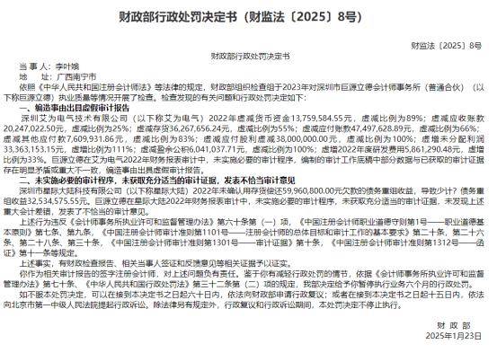 此次IPO,艾为电气拟募资约9.3亿元,其中5.45亿元用于"新能源汽车高压控制部件智能制造基地项 目",2.65亿元用于"数字控制与电力电子技术研发中心项目"、5034.56万元用于"信息化系统建设项 目",7000万元用于"补充流动资金"。 财务造假审计机构变更 招股书只字未提 2025年9月30日,深交所官网显示,深圳艾为电气技术股份有限公司(以下简称"艾为电气")的IPO审核 状态变更为"中止",原因是财务资料已过有效期。这本是IPO审核中的常规操作,但对于艾为电气而 言,这次中止为其本就充满争议的上市之路再添变数。 艾为电气的IPO进程堪称"闪电速度"。2025年6月20日,公司创业板IPO申请获受理;7月4日进入问询阶 段;9月16日,公司完成了首轮问询回复。 艾为电气在长达296页的回复说明中,试图回应监管对其股权代持、客户集中、研发投入等17项问题的 质疑。然而,该公司此前被财政部点名财务造假、审计机构出具虚假报告的"黑历史",却在其招股书中 只字未提,引发市场对其信披透明度与财务真实性的强烈质疑。 2025年1月,财政部一纸行政处罚决定书(财监法〔2025〕8号)揭露了艾为电气2022年财报 ...