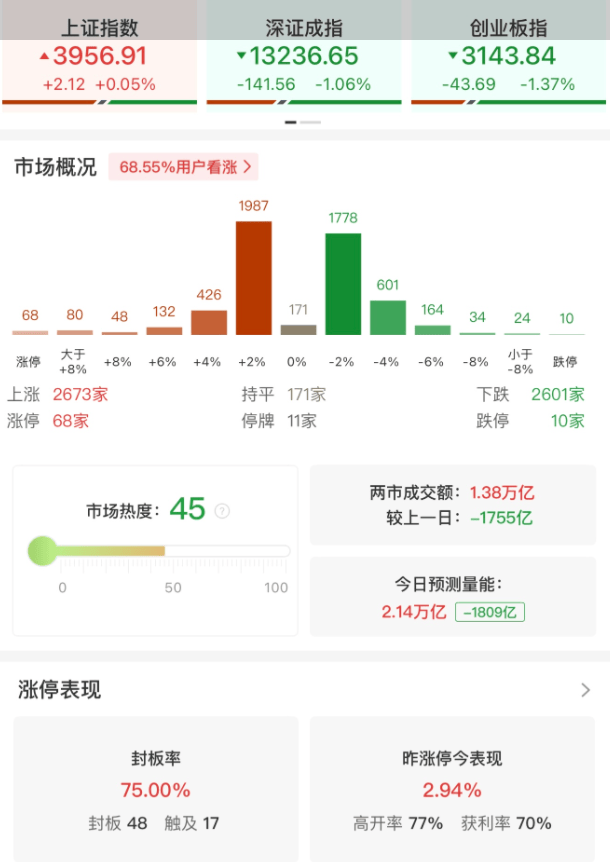 A股午评:指数涨跌不一,沪指涨0.05%创业板指跌1.37%,海南自贸区板块大涨,电池、有色金属板块调整!超2500股下跌,成交13985亿缩量1807亿