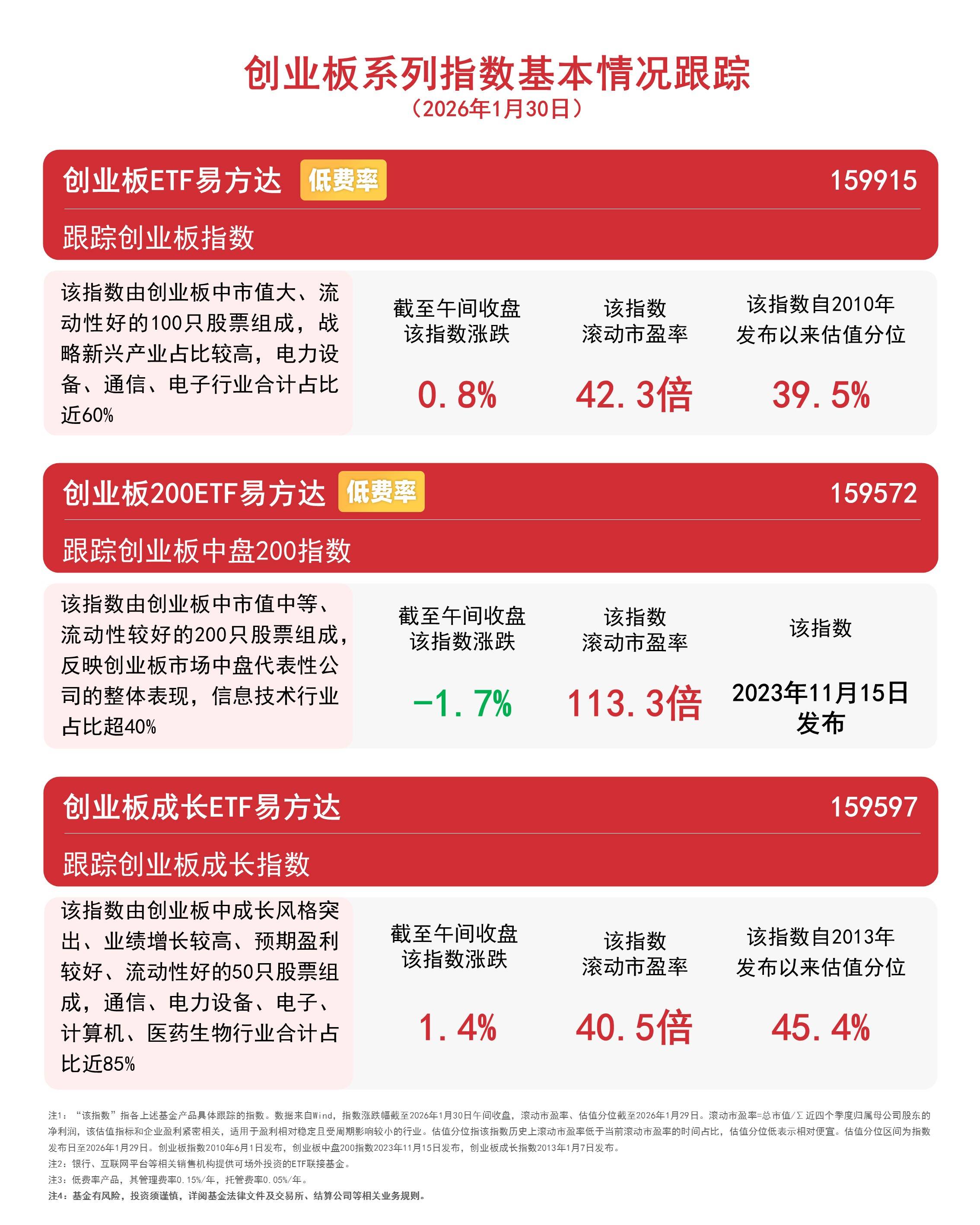 风险提示:创业板人工智能ETF华宝被动跟踪创业板人工智能指数,该指数基日为2018.12.28,发布日 期为2024.7.11,创业板人工智能指数2021-2025年年度涨跌幅分别为:17.57%、-34.52%、47.83%、 38.44%、106.35%。指数成份股构成根据该指数编制规则适时调整,其回测历史业绩不预示指数未来表 现。文中指数成份股仅作展示,个股描述不作为任何形式的投资建议,也不代表管理人旗下任何基金的 持仓信息和交易动向。基金管理人评估的本基金风险等级为R4-中高风险,适宜积极型(C4)及以上的 投资者,适当性匹配意见请以销售机构为准。任何在本文出现的信息(包括但不限于个股、评论、预 测、图表、指标、理论、任何形式的表述等)均只作为参考,投资人须对任何自主决定的投资行为负 责。另,本文中的任何观点、分析及预测不构成对阅读者任何形式的投资建议,亦不对因使用本文内容 所引发的直接或间接损失负任何责任。基金投资有风险,基金的过往业绩并不代表其未来表现,基金管 理人管理的其他基金的业绩并不构成基金业绩表现的保证,基金投资须谨慎。 MACD金叉信号形成,这些股涨势不错! 1月30日午后,创业板人工智 ...
