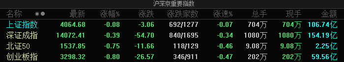 Market Overview - Major indices opened lower with the Shanghai Composite Index down 0.08%, Shenzhen Component Index down 0.39%, and ChiNext Index down 0.80% [1] - The storage, gaming, and fiberglass sectors experienced significant declines [1] Index Performance - Shanghai Composite Index: 4064.68, down 0.08%, with 692 gainers and 1277 losers [2] - Shenzhen Component Index: 14072.41, down 0.39%, with 840 gainers and 1695 losers [2] - ChiNext Index: 3298.32, down 0.80%, with 346 gainers and 911 losers [2] - Northbound 50 Index: 1537.85, down 0.75%, with 118 gainers and 129 losers [2] External Market Impact - U.S. markets saw declines with the S&P 500 down 0.84%, Nasdaq down 1.43%, and Dow Jones down 0.34% [3] - Chinese concept stocks mostly weakened, with Alibaba down 2.81%, JD.com down 1.72%, and Baidu down 2.5% [3] Industry Insights - CITIC Securities forecasts a continued price increase in the electronic components industry, driven by rising demand and upstream metal prices [5] - China Galaxy Securities highlights the potential for value reassessment in adjustable power sources due to improvements in capacity pricing mechanisms [6] - Huatai Securities notes that the adjustment of VAT for the three major telecom operators may have a lower impact on profits than initially calculated, as operators are transitioning to technology-driven services [8] Battery Technology - CITIC Jiantou expresses optimism about the solid-state battery sector, anticipating significant developments in 2026 as multiple manufacturers prepare for small-scale production and testing [4]