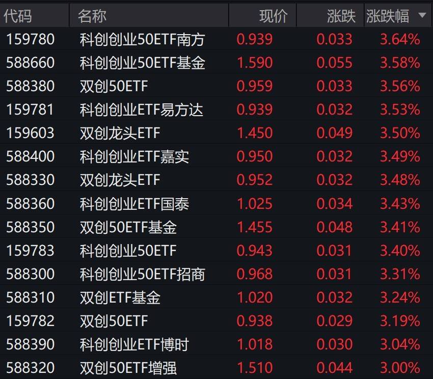 双创板块联袂走高,科创50ETF易方达(588080)、创业板ETF易方达(159915)标的指数均涨超2%